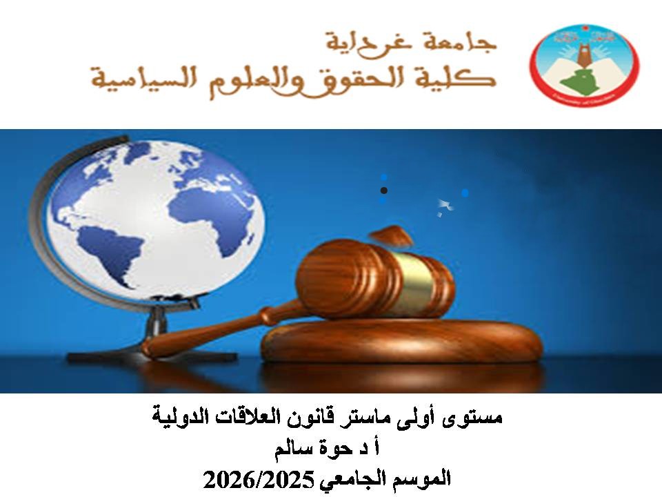 Faculté des Droits et des Sciences Politiques-كلية الحقوق والعلوم السياسية / قسم الحقوق / السنة الأولى ماستر / قانون دولي وعلاقات دولية